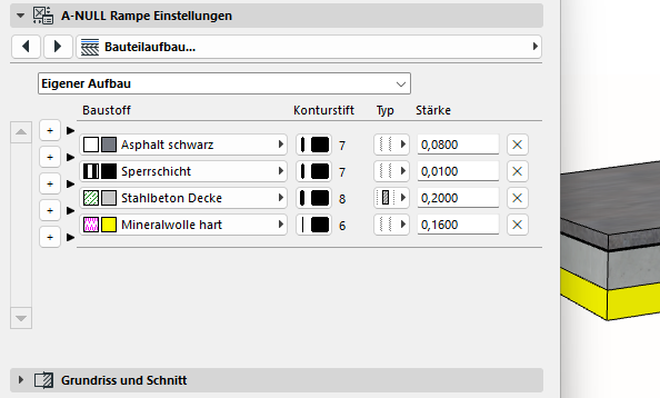 Endlich kannst du Rampen in Archicad konstruieren und dokumentieren, so wie du es brauchst. Erstelle mehrschichtige Rampen mit beliebig vielen Gefälleabschnitten und optionalem Quergefälle. Die Form kann gerade oder gebogen sein und die Kontur völlig frei definiert werden.
