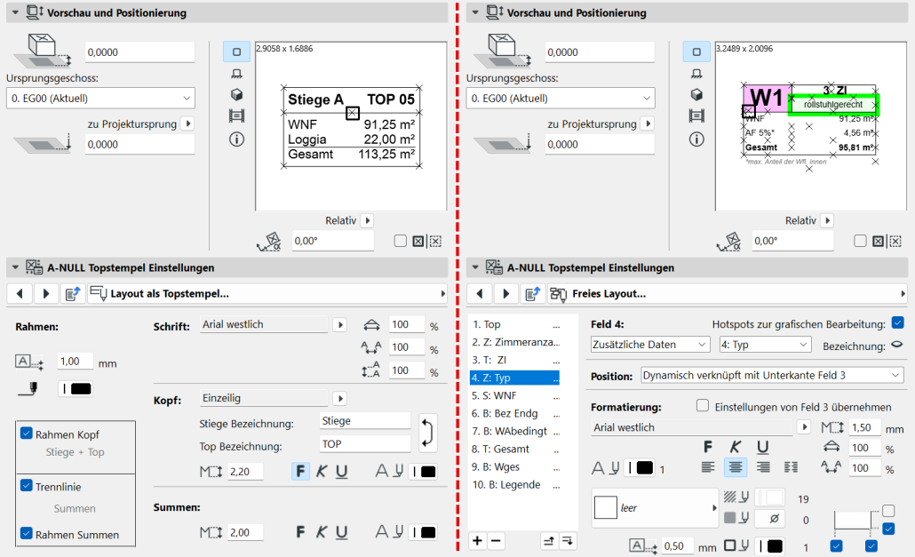 Es war noch nie so einfach und flexibel, in Archicad Räume zu Einheiten zusammenzufassen wie mit dem A-NULL Topstempel / Wohnungsstempel. Dabei ist unser Objekt so viel mehr als ein Stempel – wir nennen es intern schon Flächenmanager.