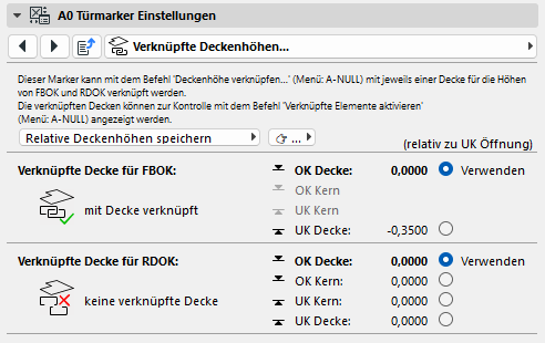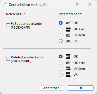 Hier kann gewählt werden, ob man die gewählte Decke als Referenz für die Fußbodenoberkante oder Rohdeckenoberkante verwenden möchte und welchen Höhenwert der Decke.