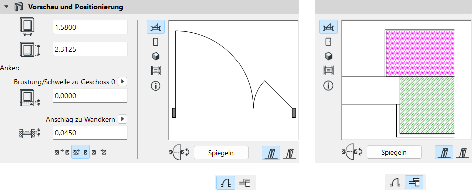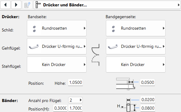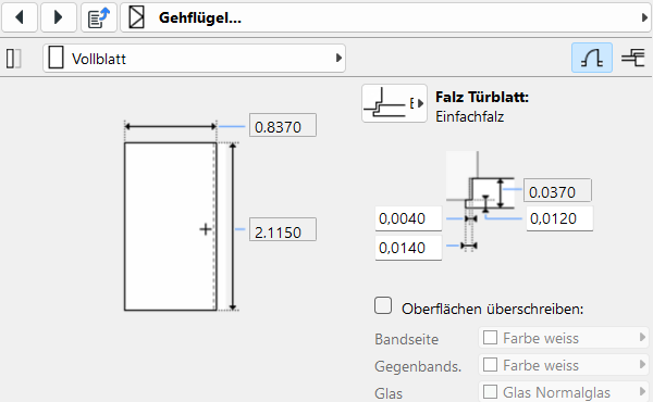 Diese Einstellungen betreffen in erster Linie die Türgeometrie sowie die davon abgeleitete Darstellung.