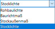 An dieser Stelle kann die Rohbauöffnung unter der Stocklichte eingestellt werden. Die folgenden Optionen stehen zur Auswahl: