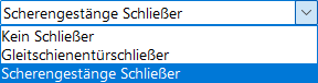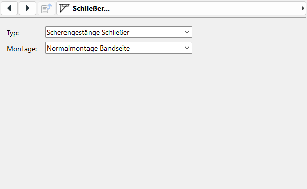 Unter dem Menüpunkt Schließer können Optionen für den Typ und die Montage gewählt werden.