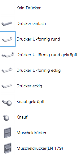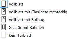 Für die Darstellung des Türblatts stehen die folgenden Optionen zur Auswahl: