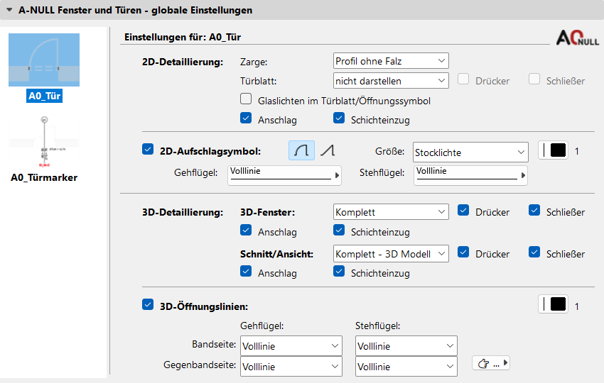 Analog zu den Standard-Türen muss für die A-NULL Tür ein Nominalmaß festgelegt werden.