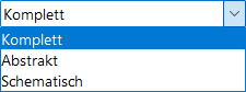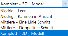 Im 3D-Modell stehen die Standardoptionen Komplett, Abstrakt und Schematisch, in Schnitt/Ansicht fünf unterschiedliche Detaillierungsgrade zur Verfügung.