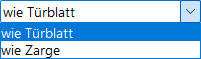 Zur Auswahl des Türblatttyps dient ein Dropdown-Menü mit verschiedenen Optionen.