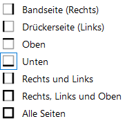 Im oberen Bereich können für unterschiedliche Komponenten die Drücker für Bandseite und Bandgegenseite definiert werden. Die Auswahl variiert je nach Typ, optional kann auch die Option Kein Drücker ausgewählt werden.