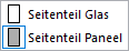 Wenn das Seitenteil aktiviert wird, lässt sich in der Optionenliste zwischen Glas- und Paneelseitenteil wählen.
