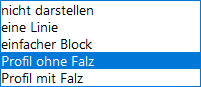 Für die Darstellung der Zarge stehen die folgenden Optionen zur Auswahl: