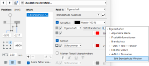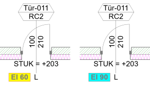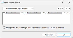 Hinweis: Ein Vorteil der eingebauten Brandschutzqualifikation als Bibliothekselementparameter ist die automatische Formatierung mit tlw. tiefgestellten Zeichen.