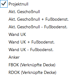 Es stehen unterschiedliche Bezugshöhen zur Auswahl.
