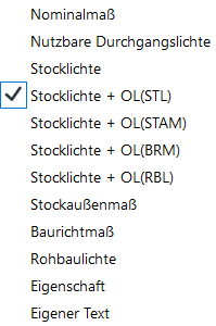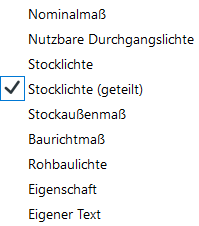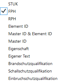 Für die Werte von Schwelle/Sturz wie FPH, RPH und STUK können unterschiedliche Präfixe und Suffixe vergeben werden. Der Wert kann aus einer Optionenliste ausgewählt werden.