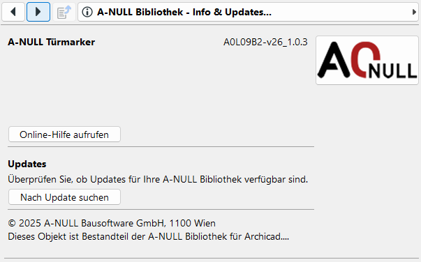 Über den Punkt A-NULL Bibliothek – Infos und Updates lässt sich die Version der A-NULL Bibliothek auslesen.
