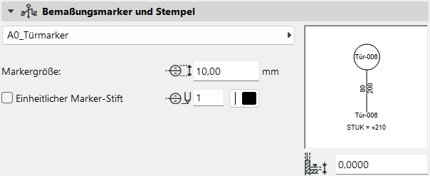 Zunächst muss der A0_Türmarker im Register Bemaßungsmarker und Stempel ausgewählt werden.