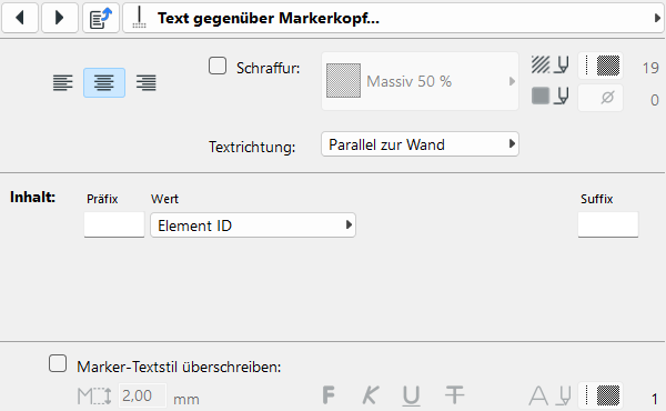 Bei Abweichungen zum allgemeinen Marker-Textstil kann zudem eine individuelle Überschreibung aktiviert werden.