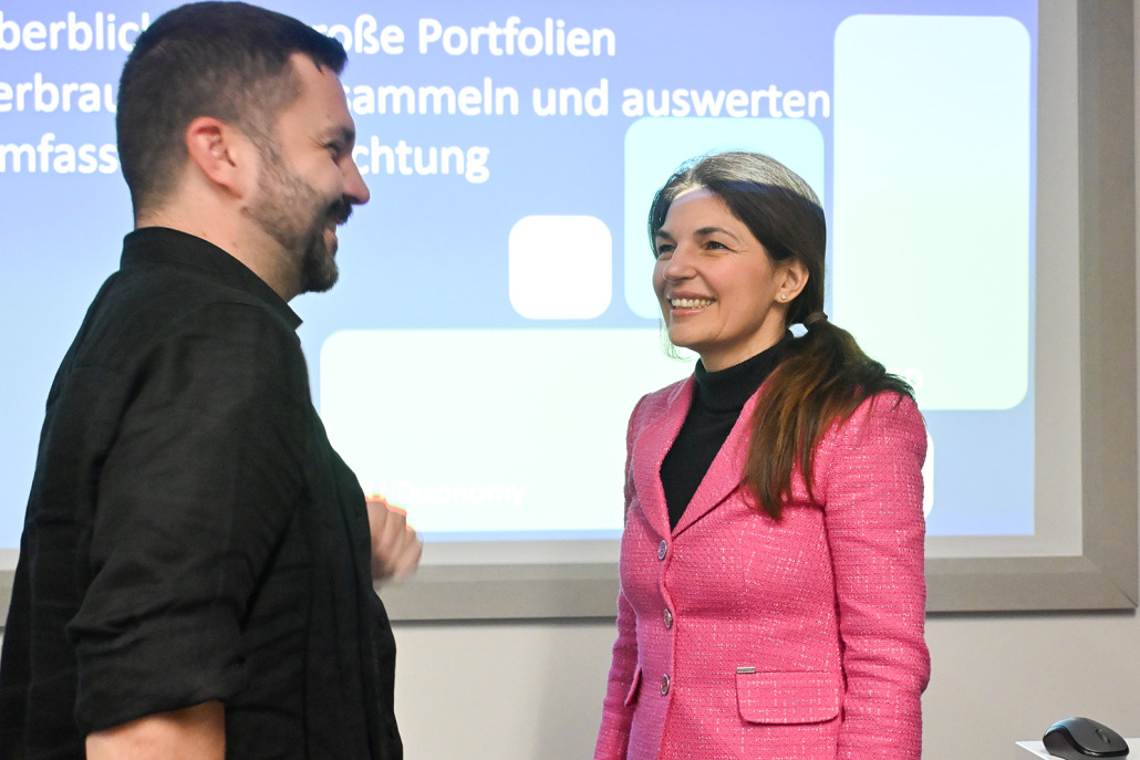 Markus Dörn und Elena Graf-Burgstaller erläuterten die Chancen und Herausforderungen automatisierter ESG-Bewertungen. Matthias Kendlbacher ergänzte mit konkreten Erfahrungen aus der Praxis und zeigte, wie automatisierte Analysen von Energieausweisen künftig für zuverlässige Taxonomie-Bewertungen und transparente Nachhaltigkeitsberichte genutzt werden können.