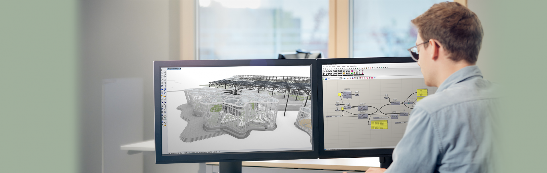 Ähnlich wie mit Lego-Bausteinen, die man aufeinandersetzt, werden in Grasshopper durch Verbindung unterschiedlichster Komponenten Algorithmen erzeugt, ohne dass umfangreiches Programmierwissen nötig wäre. Repetitive Arbeitsroutinen beim 3D-Modellieren oder Parametrisierungen von Bereichen im Entwurf, die sich während der Planung häufig ändern, können leicht von einem Grasshopper-Skript ersetzt werden und führen zu gewaltigen Zeitersparnissen. Die dabei angewandte Denkweise bringt mitunter auch neue Ansätze und Ansichten für den eigenen Entwurf.